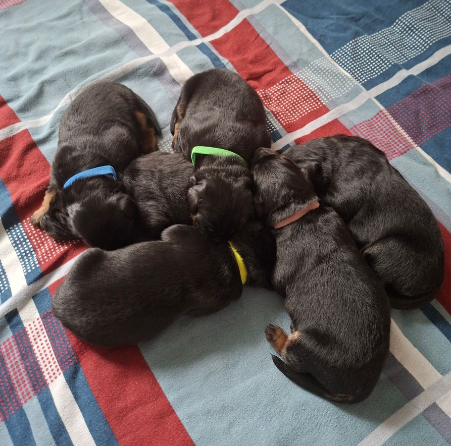 🐾💕 Am 30.07.2025 erblickten 6 bezaubernde Welpen das Licht der Welt. 4 Buben und zwei Mädels in schwarzmarken 🐾💕 Die stolze Mama kümmert sich mit viel Liebe und Fürsorge um ihre kleinen 🐾💕